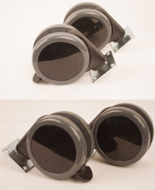 zwei freilaufende und zwei gebremste Lenkrollen