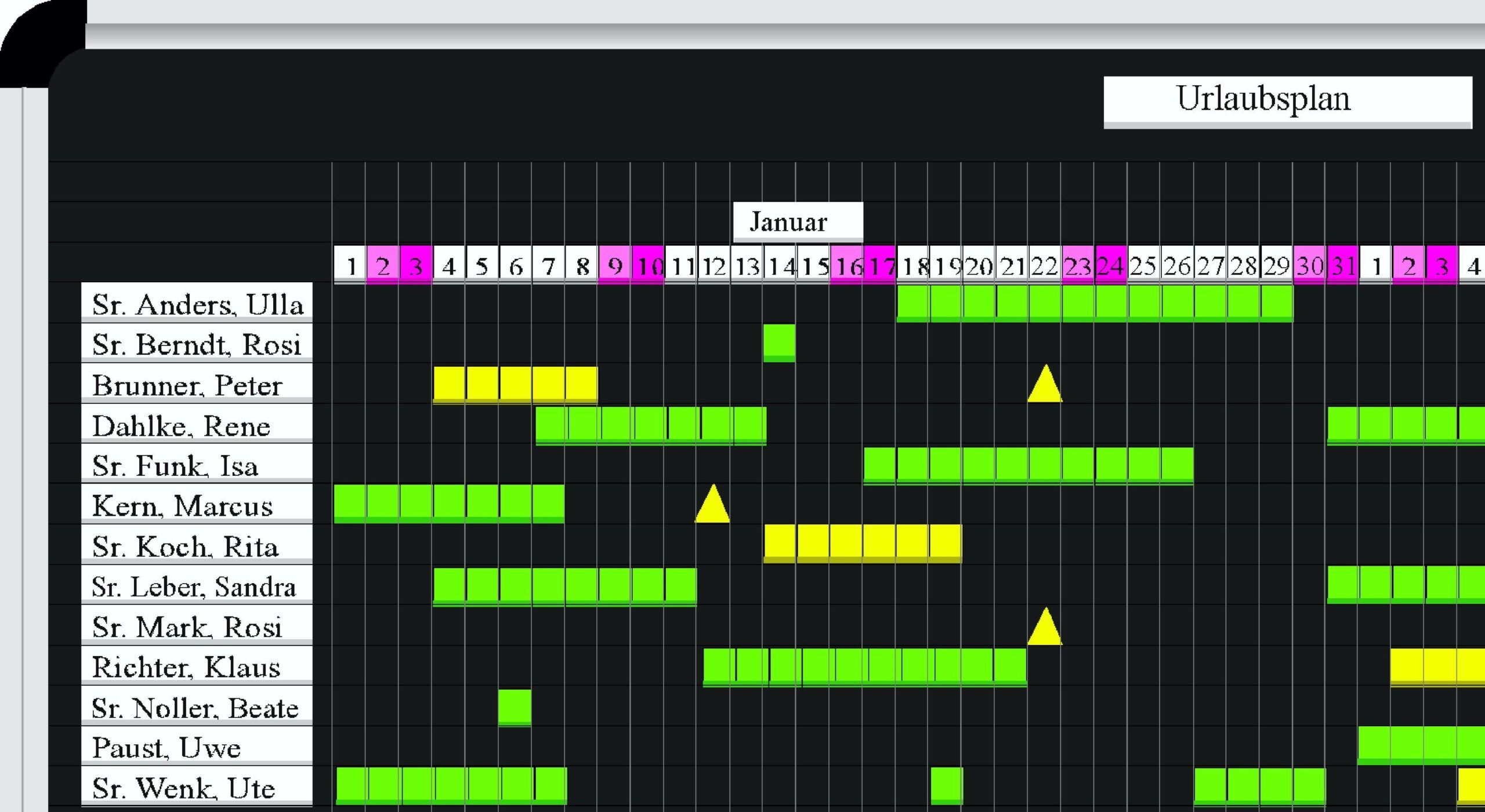 Fertiges Set um den Urlaub der Mitarbeiter genau planen zu können.