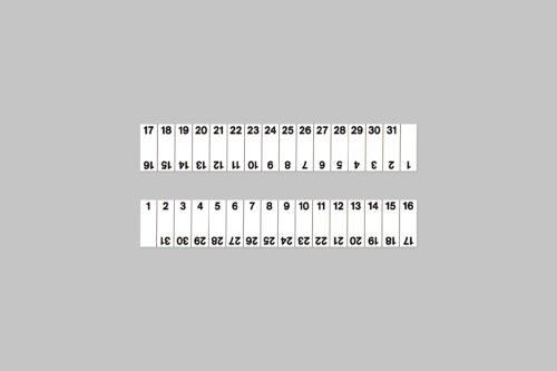 Skala mit Tageszahlen in 5, 6, 8 oder 12 mm Strichabstand