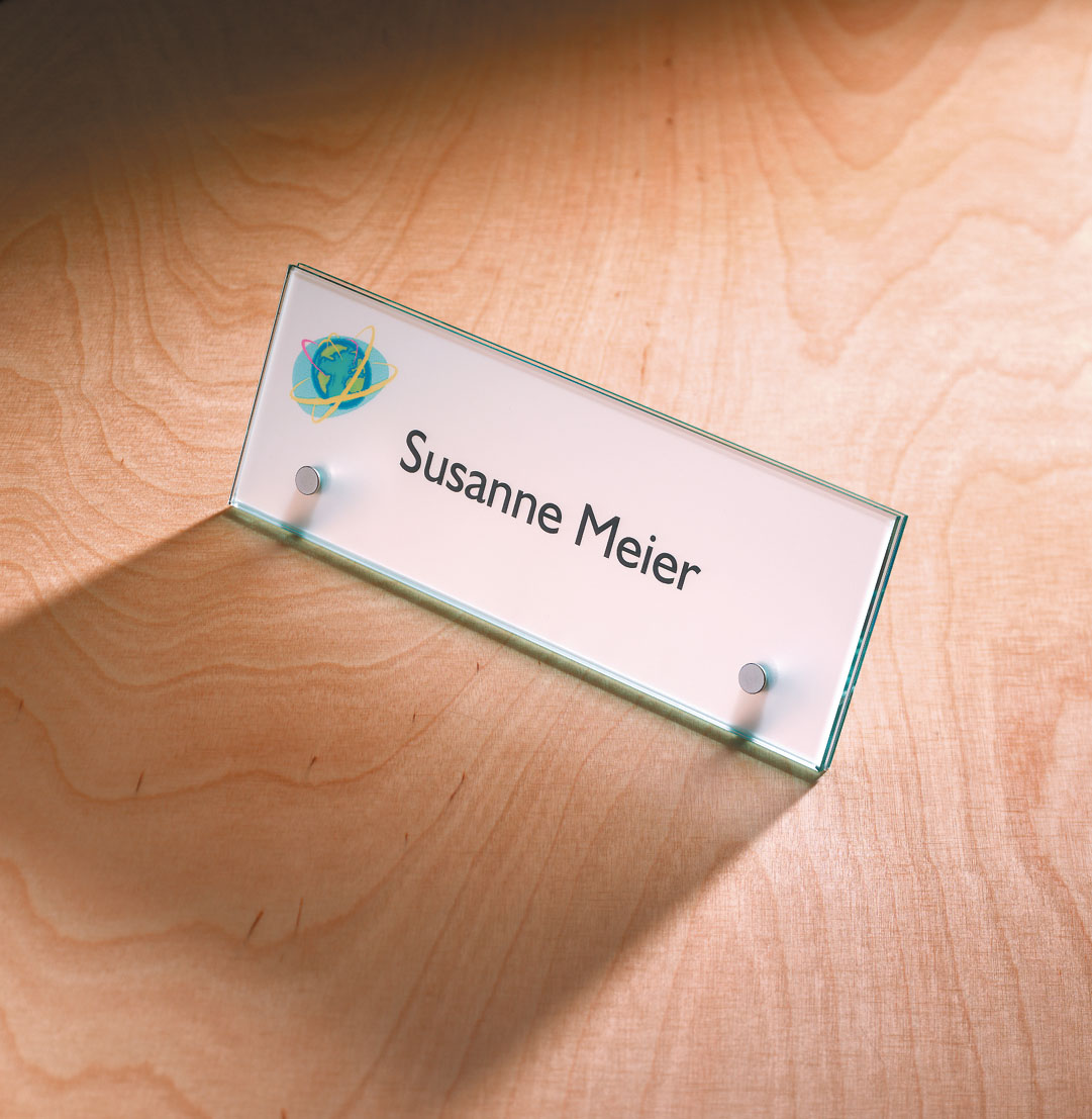 Hochwertiges Namensschild zum Hinstellen z.B. auf den Schreibtisch.