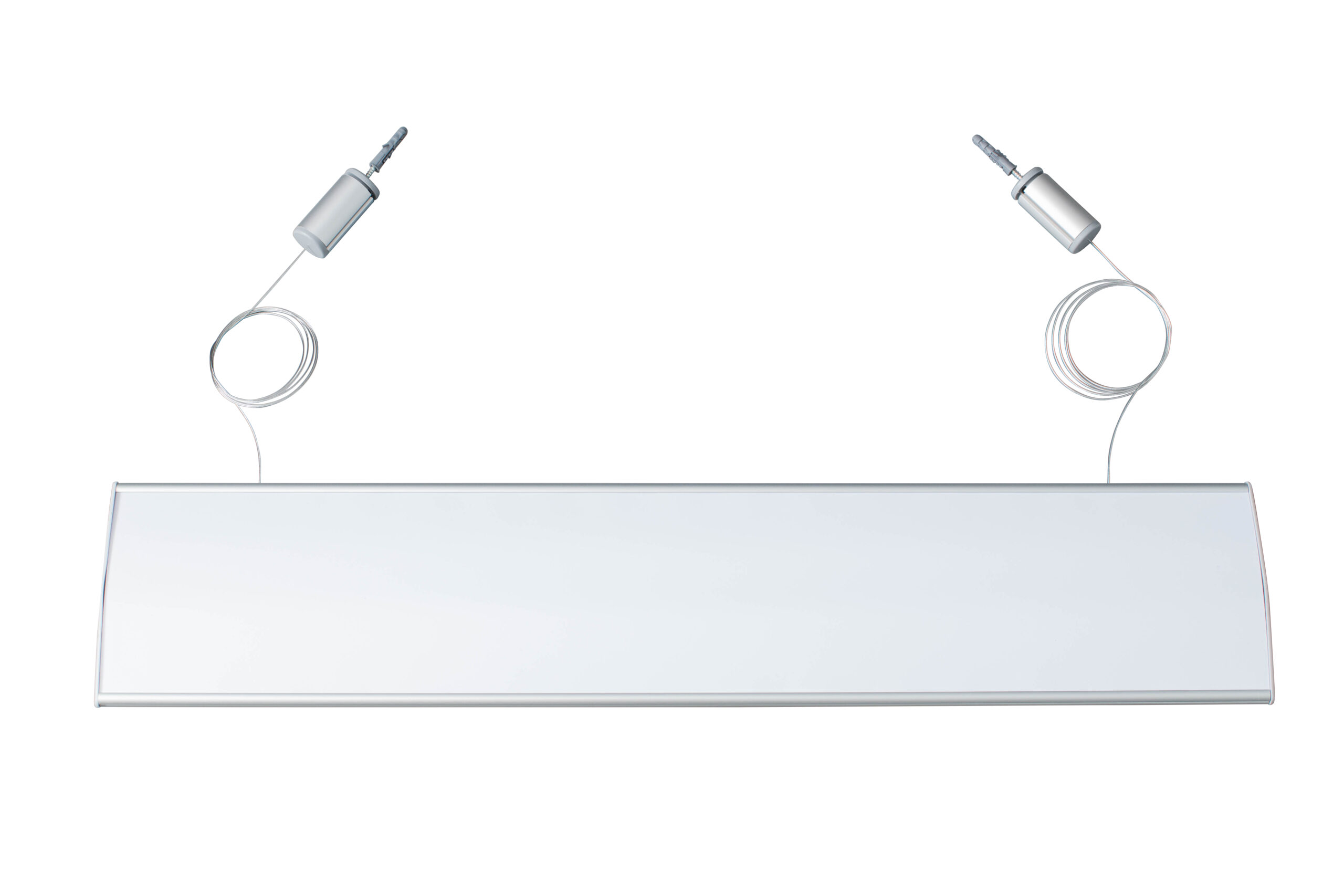 Deckenschild mit beidseitigen Beschriftungsflächen für mehr Infos.