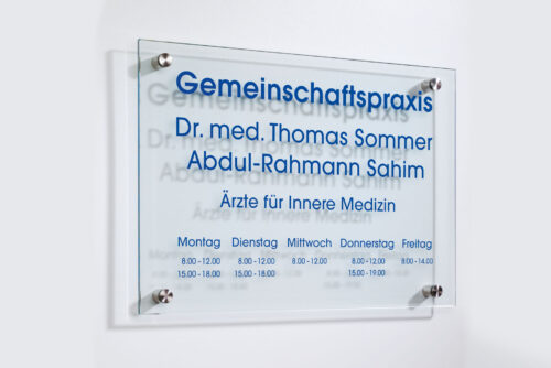 Leitschild aus gehärtetes ESG-Glas um die Gäste stilvoll zu informieren.